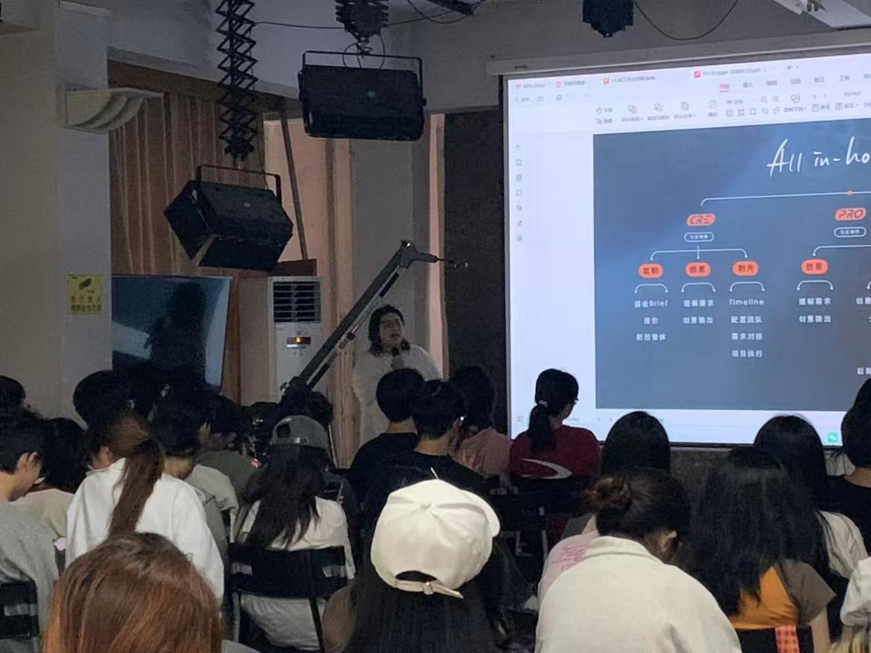 讲座以“探秘AI影像,赋能艺术创作”为主题,聚焦AI技术对视觉艺术创作流程的重塑与拓展。贝笛老师系统梳理了当前AI影像技术的前沿进展与代表性成果,结合行业案例,生动解析了AI在广告、宣传片等视觉传达领域中的创新应用。此外,他还详细演示了从概念生成到成品输出的完整AI影像创作流程,揭开了AIGC艺术创作的神秘面纱,为现场师生提供了可借鉴的技术路径。