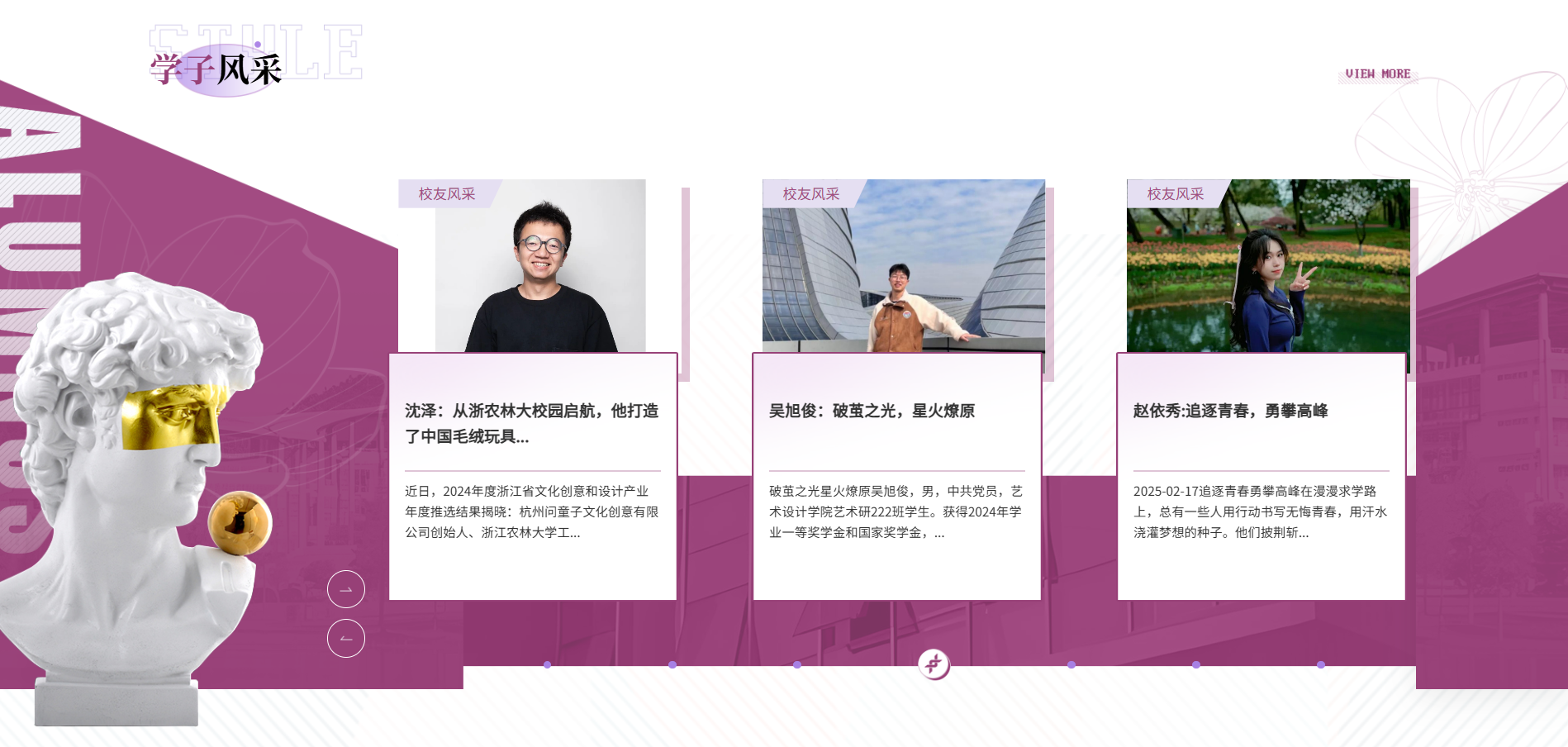 目前,艺术学院新网站已正式上线,诚邀您访问全新平台(https://art.zafu.edu.cn/sy.htm),新网站将依托动态更新机制,实现学院新闻、通知公告等内容的实时发布与精准呈现,欢迎广大师生、校友及社会各界人士持续关注,共览学院发展新貌!