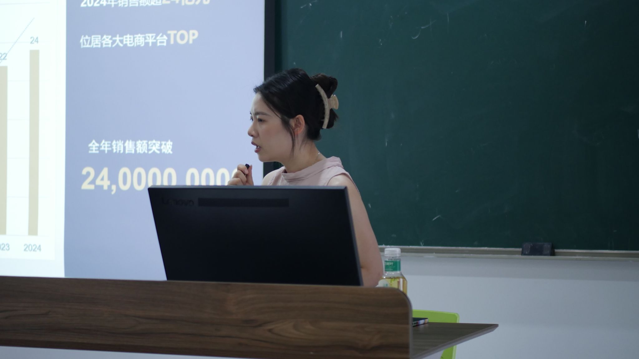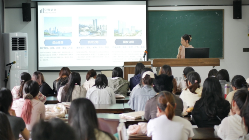 宣讲会上,拓森控股集团的宣讲代表详细介绍了公司作为中国著名女装企业集团的发展历程、旗下“丝柏舍”、“UNIFREE”等知名品牌矩阵,以及坚持以服装为核心、电子商务为渠道的多元化发展战略。此外,她着重介绍了公司2024年营收突破24亿元的亮眼成绩与地处“人间天堂”杭州的区位优势,让同学们充分了解了企业的广阔平台与发展前景。