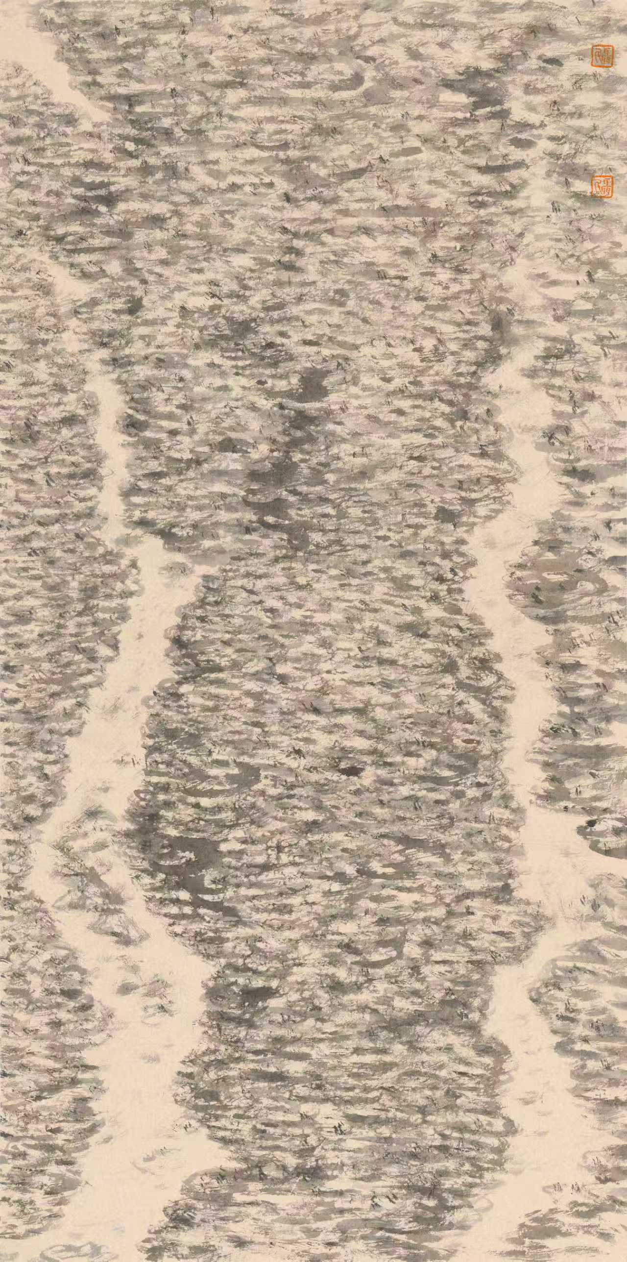 与西方展品及国内其他当代艺术作品相较,《齐物·参山》更侧重于笔墨本身的表现力与传统文化中的“性灵”书写。对于创作理念,聂松博士讲到:“继承传统不是一味地复古,传统是向前推进的,作品中须具备艺术家品格与其艺术语言相互碰撞的力量。而中华文明在文人画上的展现,就是带有中国烙印的文化意味,即笔墨与形式皆具有中国传统中的文人性灵。”这一思想在其作品中得到了充分印证——画面既见古意,又饱含属于这个时代的个体力量与前瞻视野。