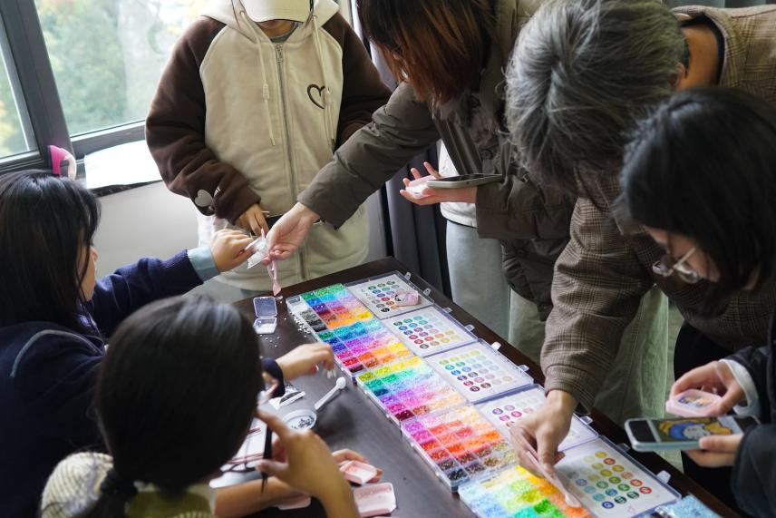 随着拼豆工具与色彩斑斓的豆子的摆放,现场的氛围逐渐升温。同学们或围坐讨论,或专注创作,将对冬天的期待与想象融入一颗颗小小的拼豆中。