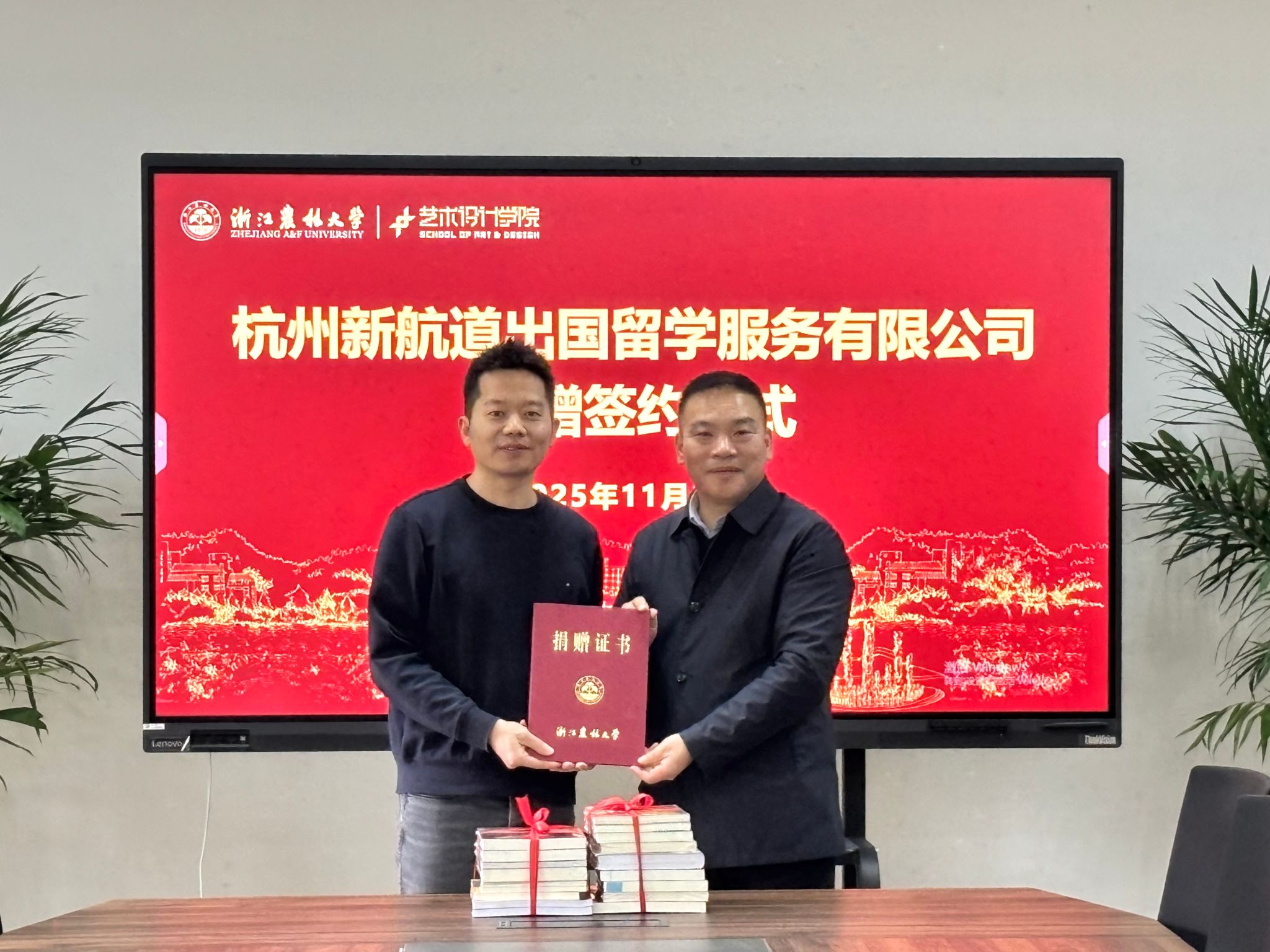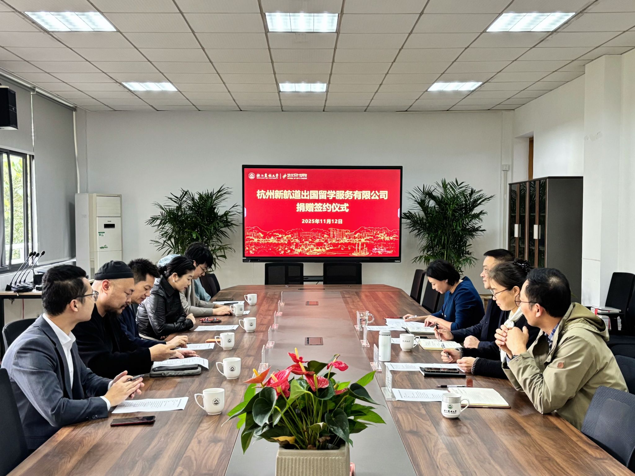 11月12日上午,艺术学院与杭州新航道出国留学服务有限公司捐赠合作协议签署仪式在学5-401顺利举行。杭州新航道出国留学服务有限公司副总裁吴勇、校基金会主任哀建国、艺术学院党委书记黄晓芳及师生代表共同出席仪式。