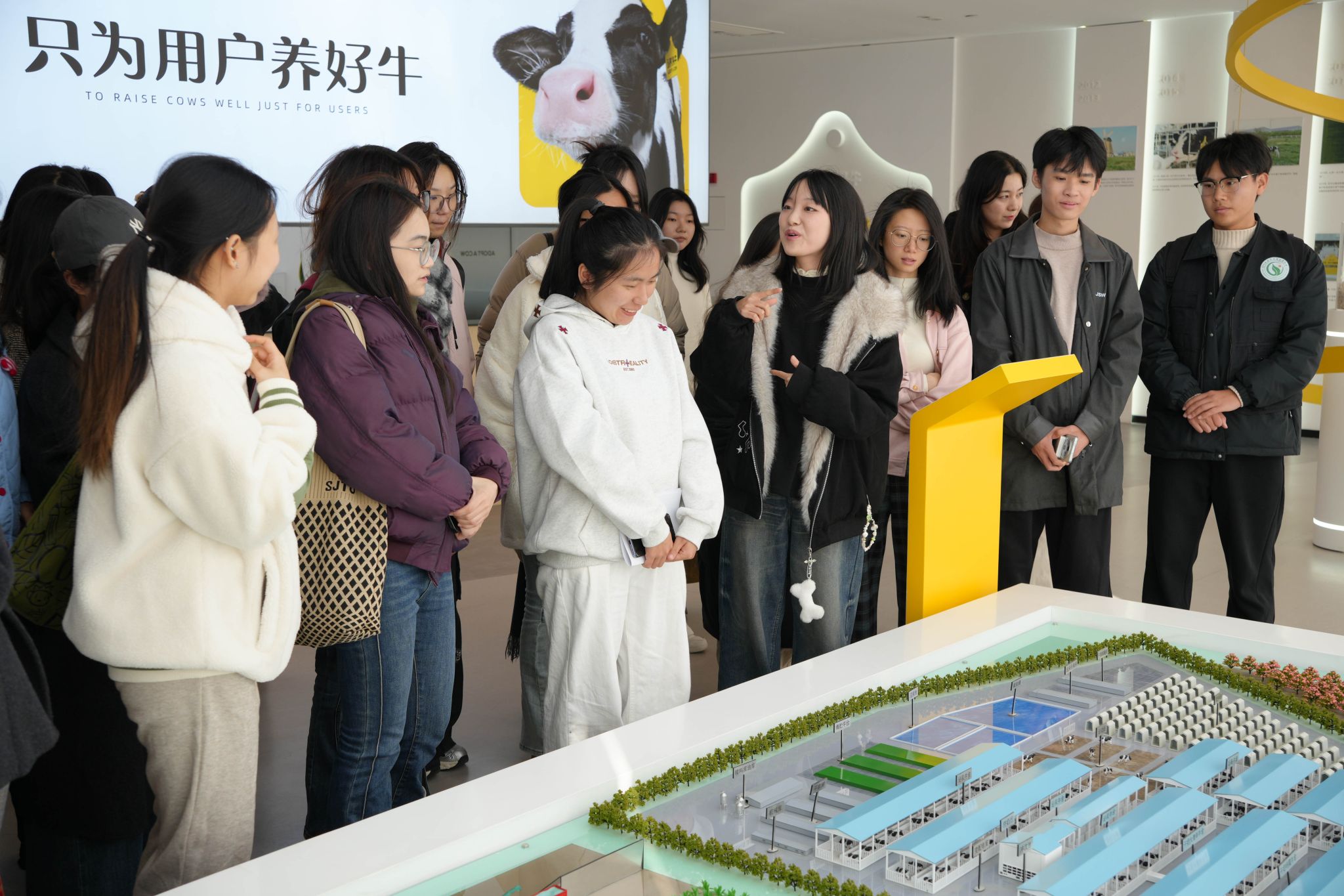 认养一头牛集团是一家大型农业全产业链集团,专注于一二三产业的高度融合,被评为“农业产业化国家重点龙头企业”和“国家高新技术企业”,连续两年蝉联胡润全球独角兽企业,荣登2023年中国农业企业500强和中国农业企业奶业20强榜单。集团人事部门负责人沈芷兰对师生一行的到访表示热烈欢迎,并详细介绍了公司的品牌发展史、企业文化等内容。同学们集中参观了集团运营核心区域,与企业方多部门管理人员进行详细交流。