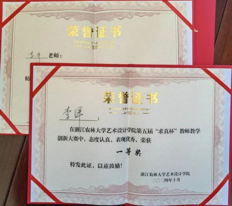 他常年深耕视觉传达专业教学与科研一线。教学上,创新课堂模式,将非遗活化、乡村振兴等设计理念融入教学,获得中国包装设计大赛全国一等奖、校“求真杯”教学创新大赛一等奖等多项荣誉,以硬实力引领学生成长。科研上,主持参与各类课题12项、科研著作16项,将科研成果转化为教学资源,指导学生参与项目。学生专业技能稳步提升,更在科研与竞赛中屡获突破:潘珂敏获米兰设计周全国决赛一等奖,沈雨轩发表外观专利,向烨琦、潘珂敏发表学术论文,多人在国家级、省级赛事中获奖,教研双向赋能、师生共进。