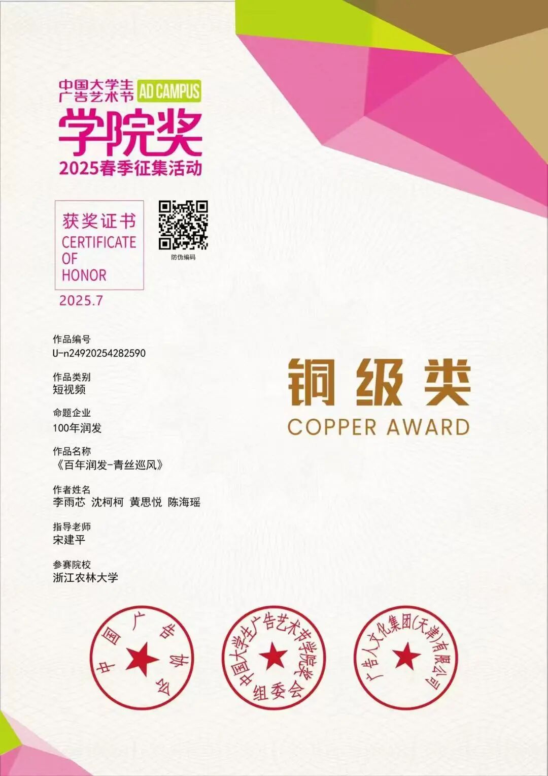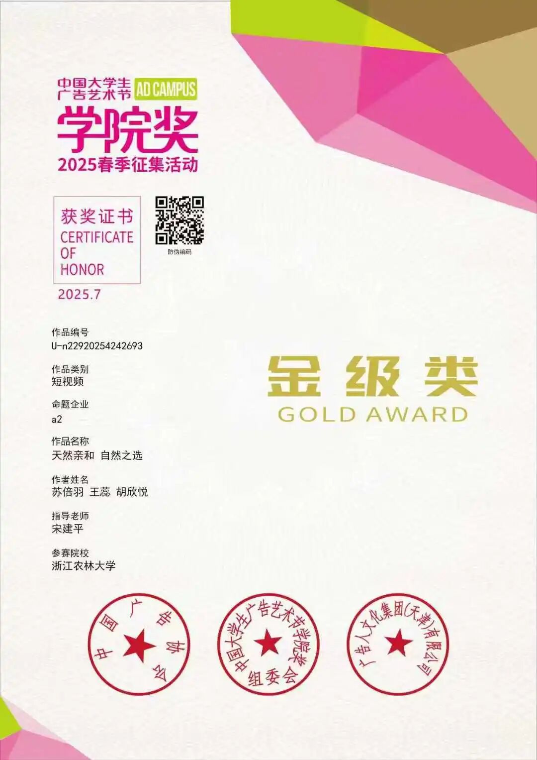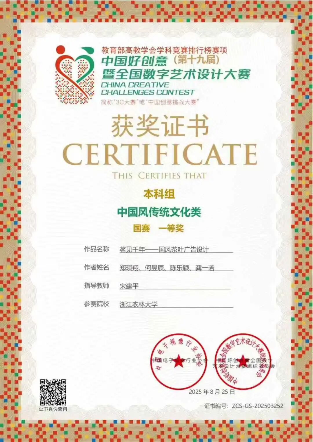 在学科竞赛方面,班级同学秉持着“纸上得来终觉浅,绝知此事要躬行”的学习理念,主动走出寝室,进入赛场,获评国家级奖项1项,省级奖项10余项。郑琪翔等同学荣获第十九届全国数字艺术设计大赛国赛一等奖;苏倍羽、王蕊同学在2025春季学院奖中获得国家级金级、国家级铜级奖项。