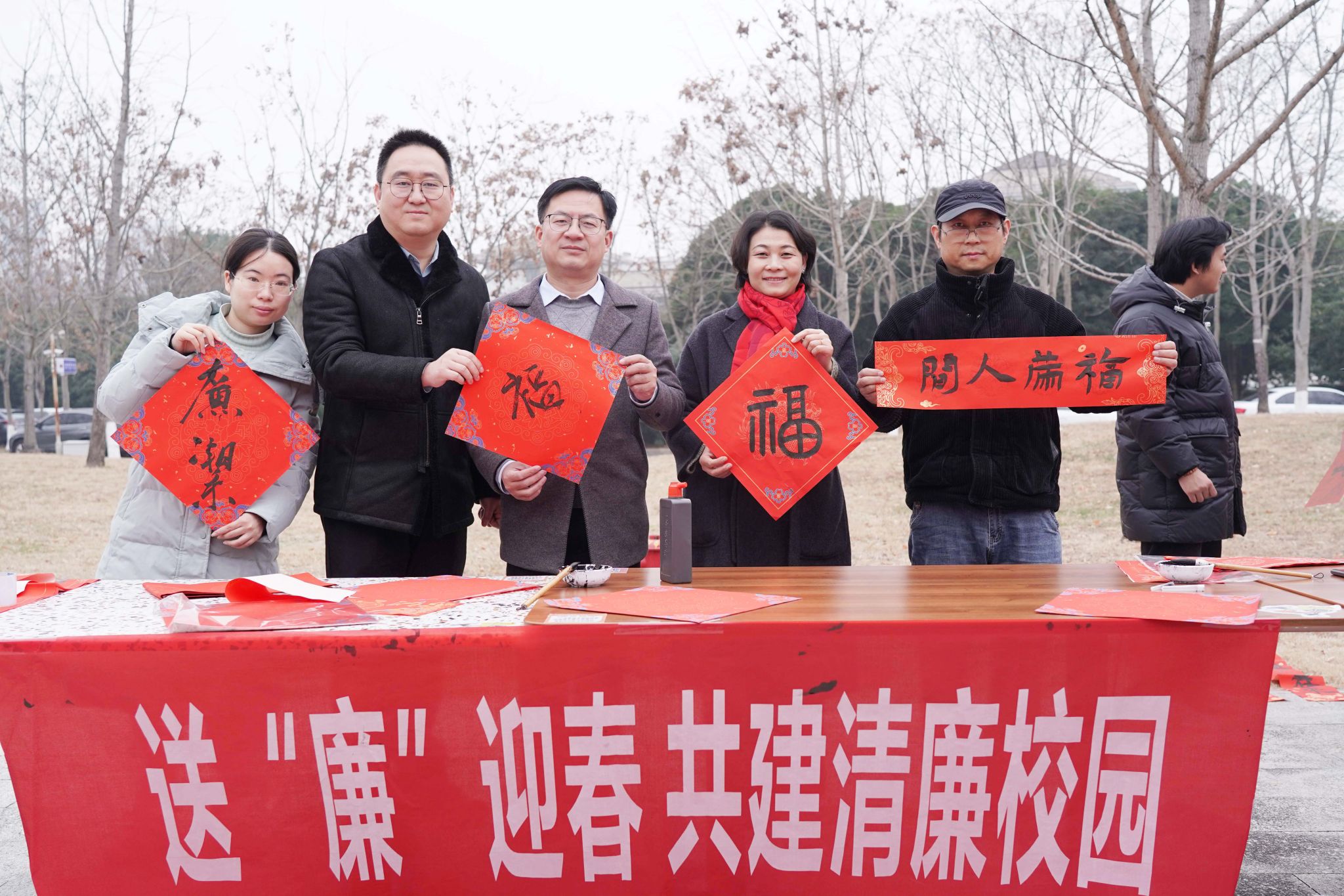 12月30日,“送春联、传清廉”主题活动在学校银杏餐厅、东湖食堂举行。本次活动由校纪检监察室主办、艺术设计学院纪委和后勤服务中心纪委承办、大学生书法协会协办,旨在将廉洁教育融入新春文化,弘扬清风正气,引导师生特别是青年学生树立清廉观念,共同营造崇廉尚洁的校园氛围。