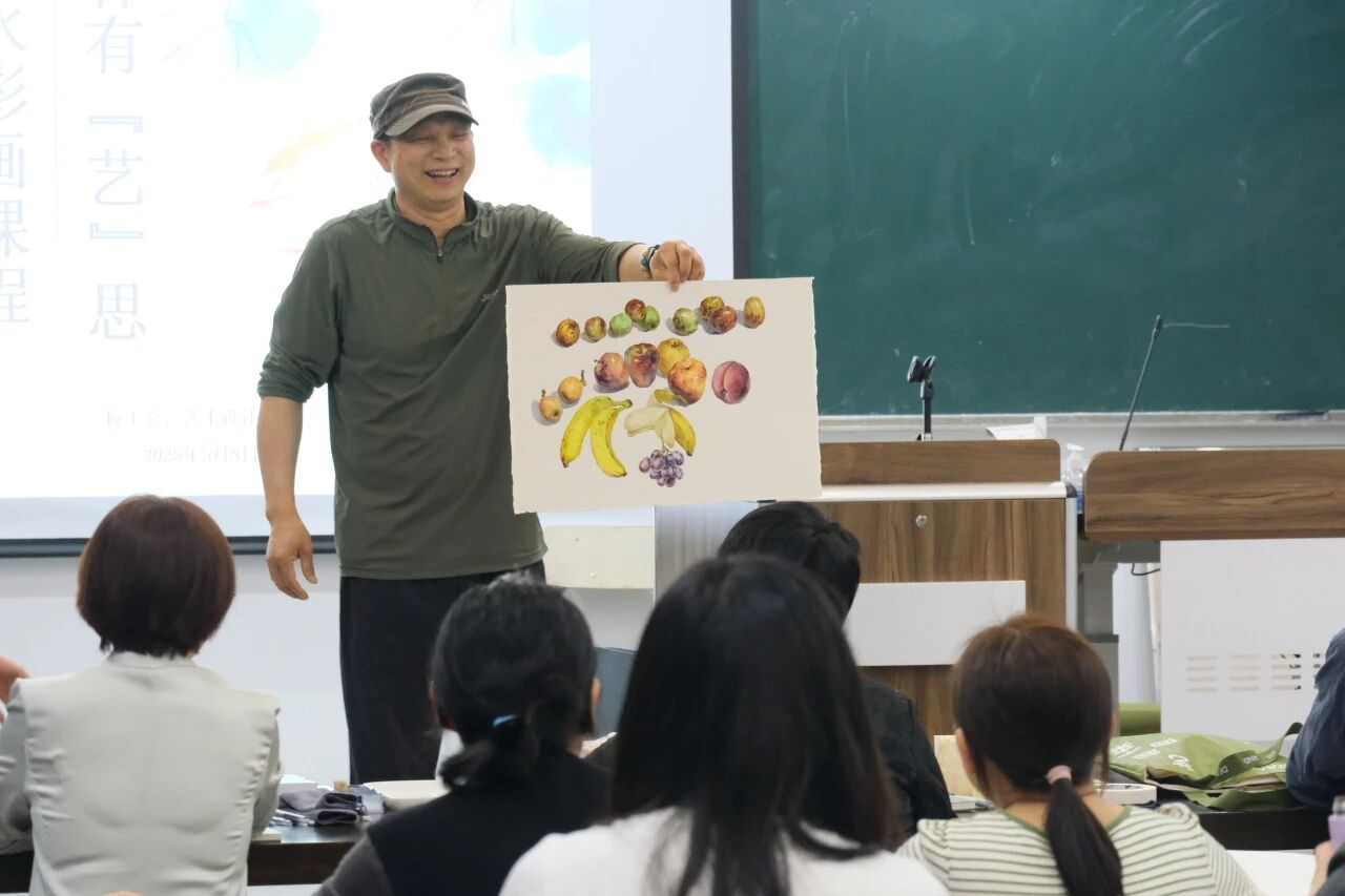 3.发挥专业服务学校。学院依托专业特色,致力于构建全方位、多层次的美育教育体系。先后承办“三八”妇女节螺钿饰品制作、服饰搭配讲座等校级活动,牵头开设面向全校教职工的公益水彩画兴趣班,首期2个班级惠及50名教工,让教职工们近距离感受水彩艺术的魅力,提升对美的感知与鉴赏能力。