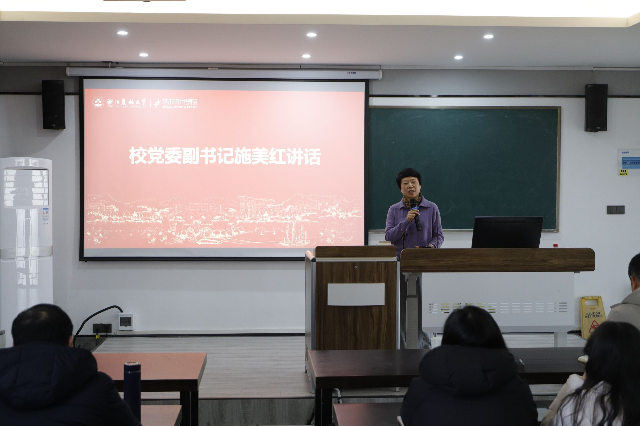 1月22日,艺术设计学院在学5-305召开2025年度教职工表彰大会。校党委副书记施美红出席活动并讲话,学院党政领导班子及全体教职工参加。