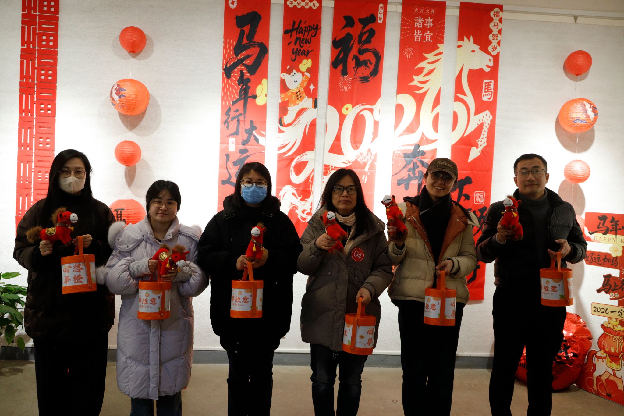 会后,学院还组织开展了“幸福‘艺’家人,喜迎马年新春”主题团建活动。现场气氛热烈、暖意融融,教职工通过抽签组成十支队伍,在各项趣味项目中全情投入、协力同行。“欢乐投壶”“飞镖投准”考验专注、“赶马入厩”“两圈到底”彰显协作、“幸运沙包”欢乐无穷、“圈圈套果”妙趣横生,欢声笑语不绝于耳,生动展现了艺术学院教职工团结活泼、和谐奋进的精神风貌。活动中,教师代表挥毫泼墨,创作出一幅幅寓意吉祥的马年书法作品,将专业特色与佳节氛围巧妙相融,更为现场增添了浓厚的艺术气息与温情暖意。本次团建有效凝聚了团队合力,提升了归属意识,为新一年学院各项事业的发展注入了满满活力与蓬勃朝气。