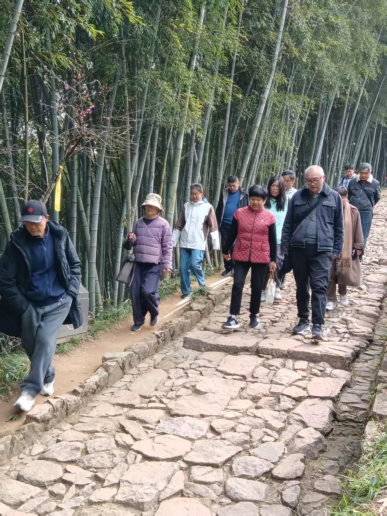 阳光和煦,春意盎然。老同志们精神矍铄、兴致勃勃,一路欢声笑语。大家漫步于径山清幽的自然景致之中,看茶园叠翠,听竹风轻吟,沉浸于禅意山水与田园风光交融的春日画卷中。他们或驻足赏景,或合影留念,或闲话家常,共同回忆往昔教书育人的岁月,畅谈学院近年来的发展变化,言语间饱含着对学院事业的深切牵挂与美好祝福。