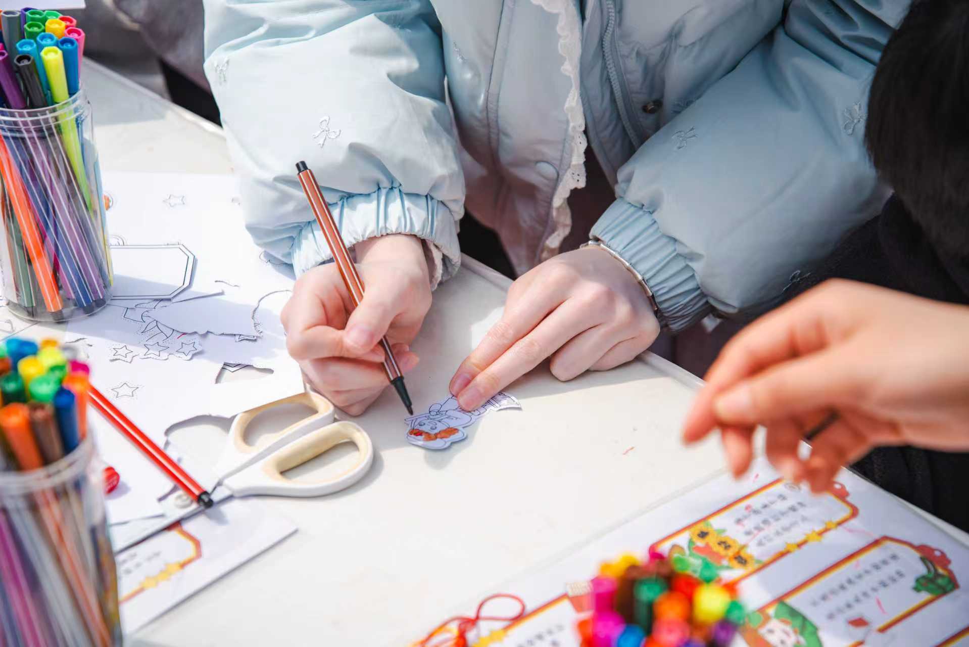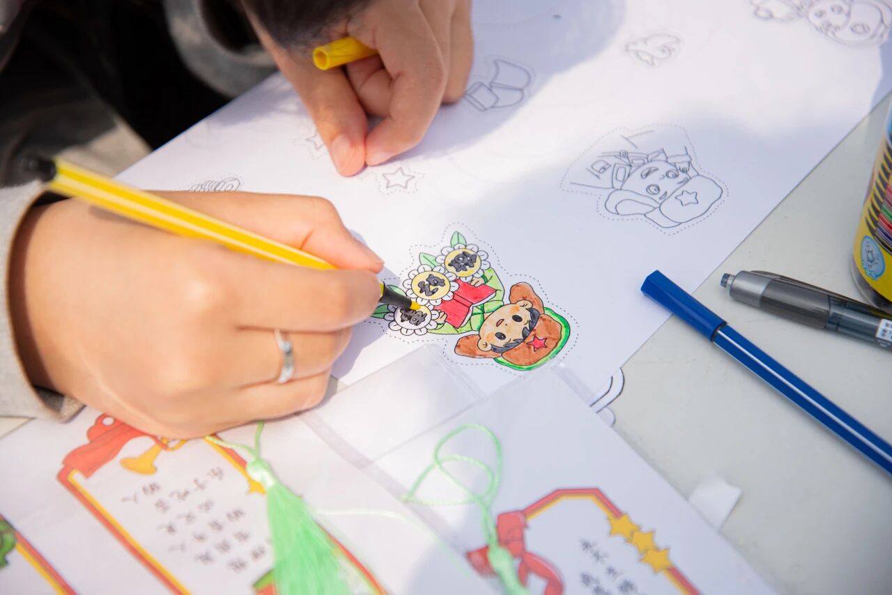 活动前期,志愿者们精心剪裁雷锋主题卡纸图案,备齐彩铅、水彩笔等绘画工具,为活动的顺利开展做好充分准备。活动现场,参与者们驻足挑选心仪的图案,用画笔勾勒填涂,描绘出自己心目中的雷锋形象,制作出独具意义的雷锋主题书签。在志愿者的引导下,大家专注创作,交流互动,现场洋溢着欢声笑语。