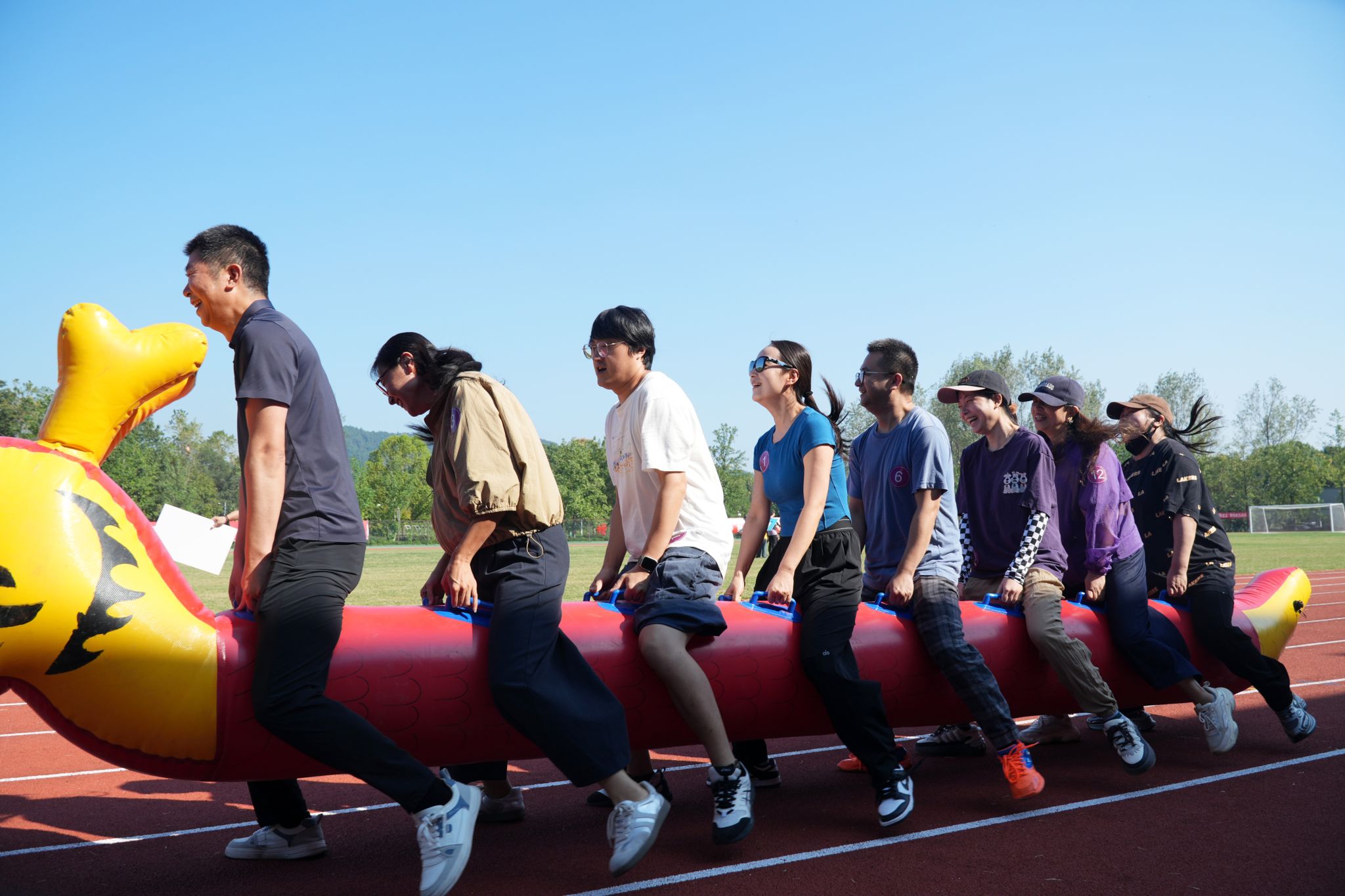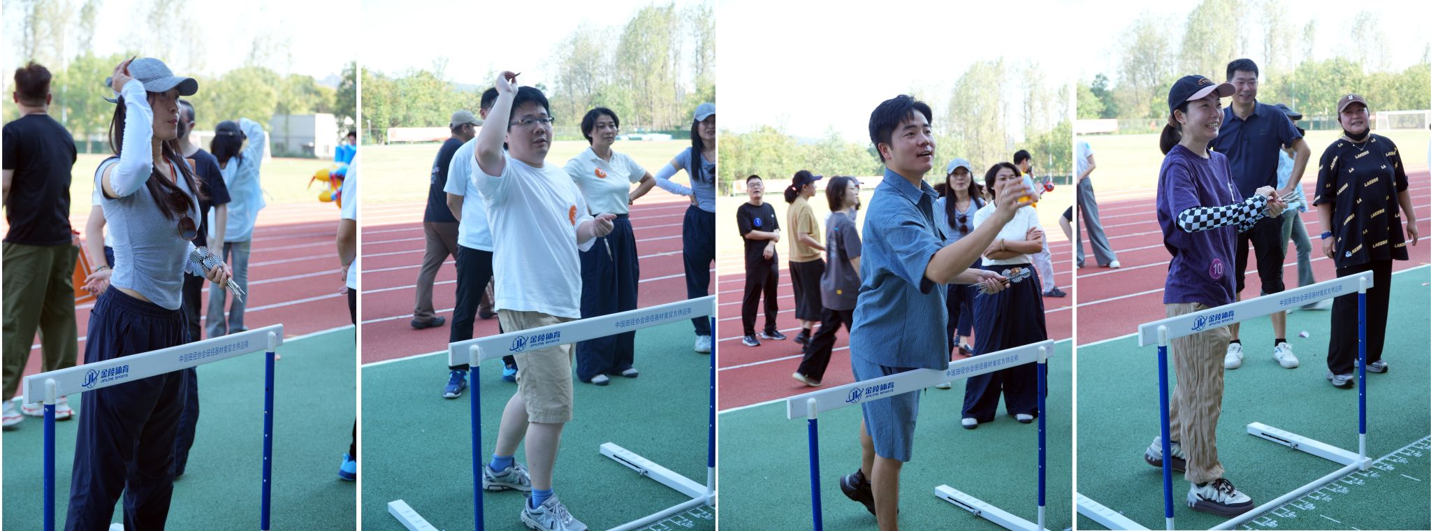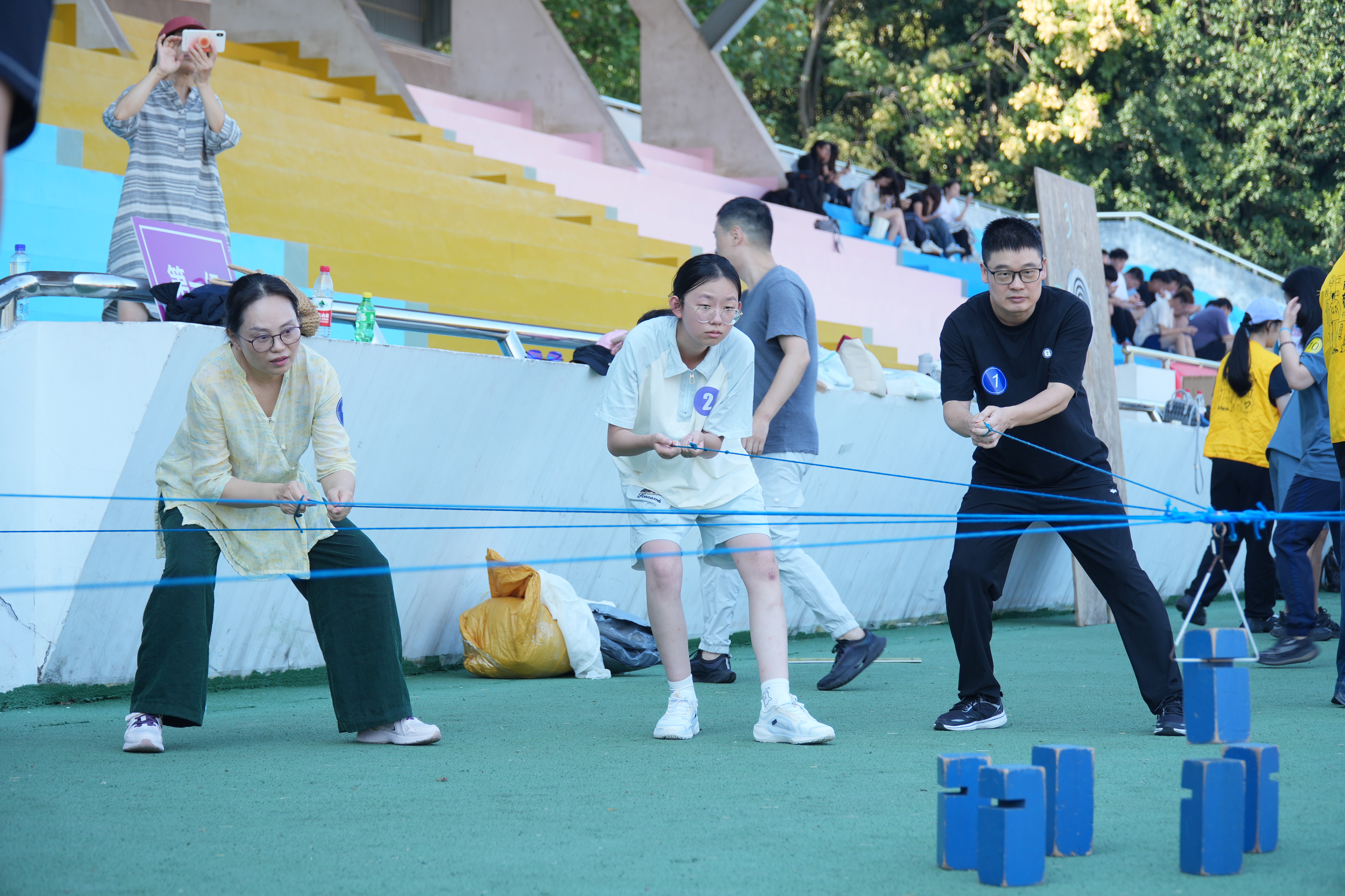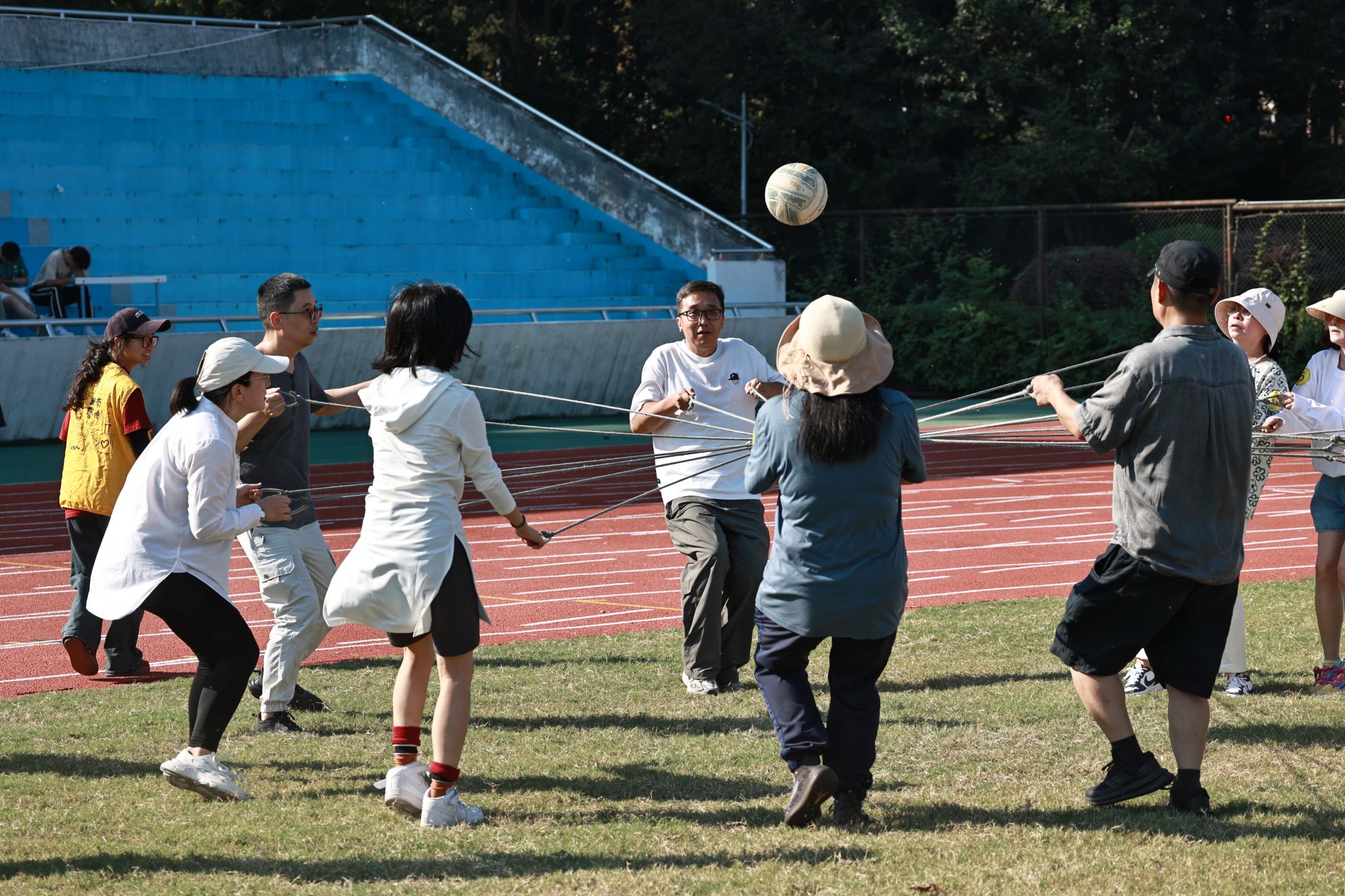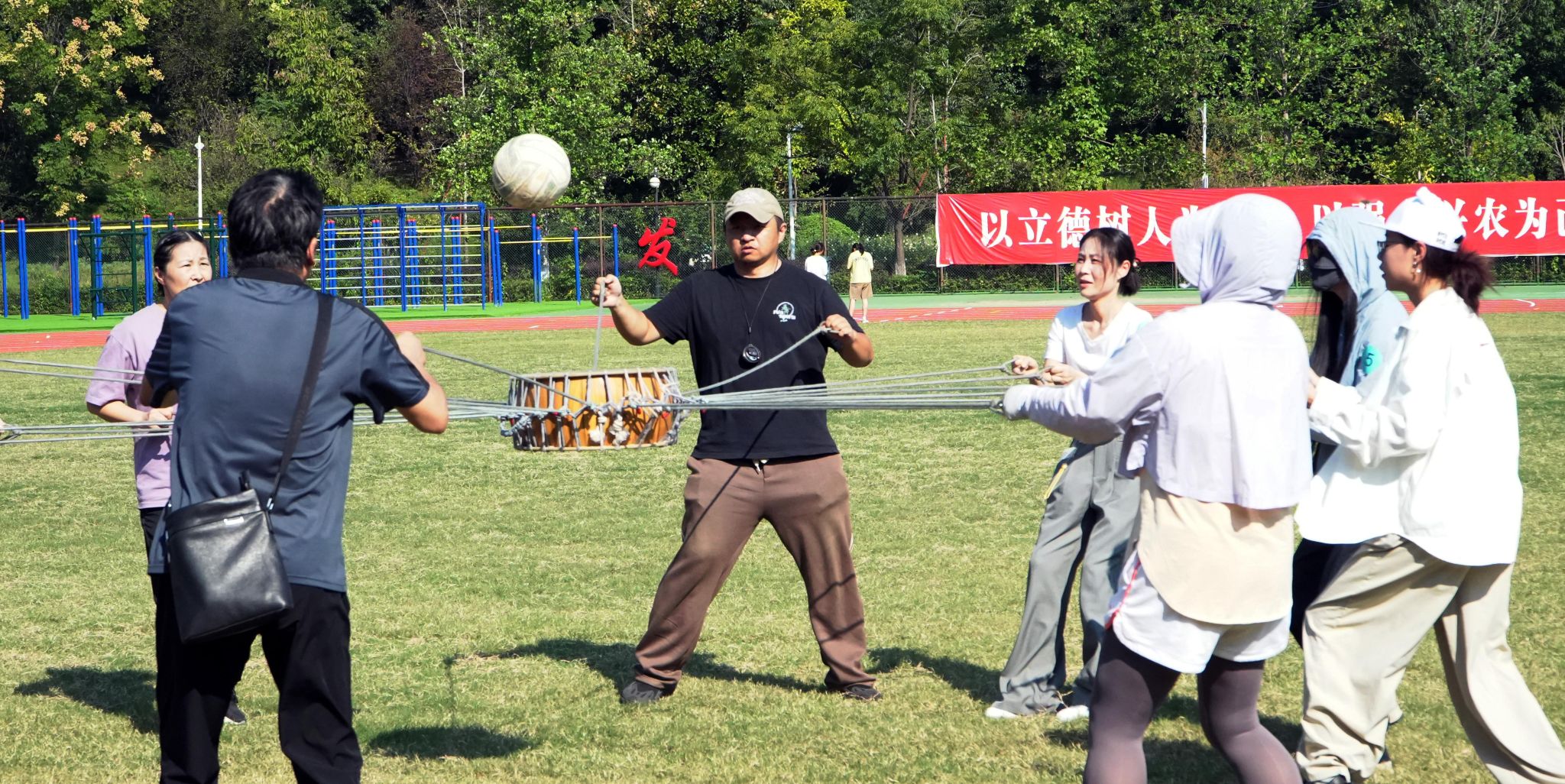 “飞镖投准”项目迅速点燃赛场气氛,各队选手依次上场,凝神屏气、专注投掷,每一次精准命中都引来阵阵掌声。“合力建塔”与“鼓动人心”等项目,则充分展现了团队的默契与协作,教职工们在配合中凝心聚力,将集体合作精神发挥得淋漓尽致。“毛毛虫”项目将现场氛围推向了高潮,各队教师步伐协调、口号整齐,在欢声笑语中协力冲向终点。运动场上气氛热烈,欢呼与助威声不绝于耳。