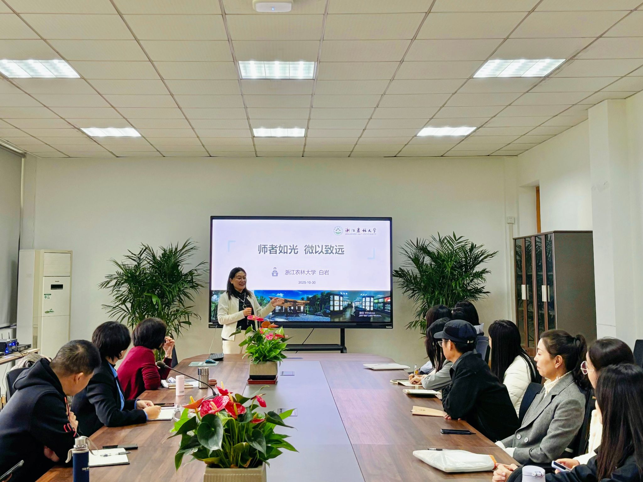 10月30日下午,艺术学院在学5-401举办幸福“艺”家人系列主题讲座。特邀“浙江省师德楷模”“浙江省巾帼建功标兵”“浙江省突出贡献科技特派员”,我校食品与健康学院白岩教授为学院教师带来“师者如光 微以致远”专题讲座,学院党支部书记及支委委员、专业负责人和新进年轻教师等40余人参加。