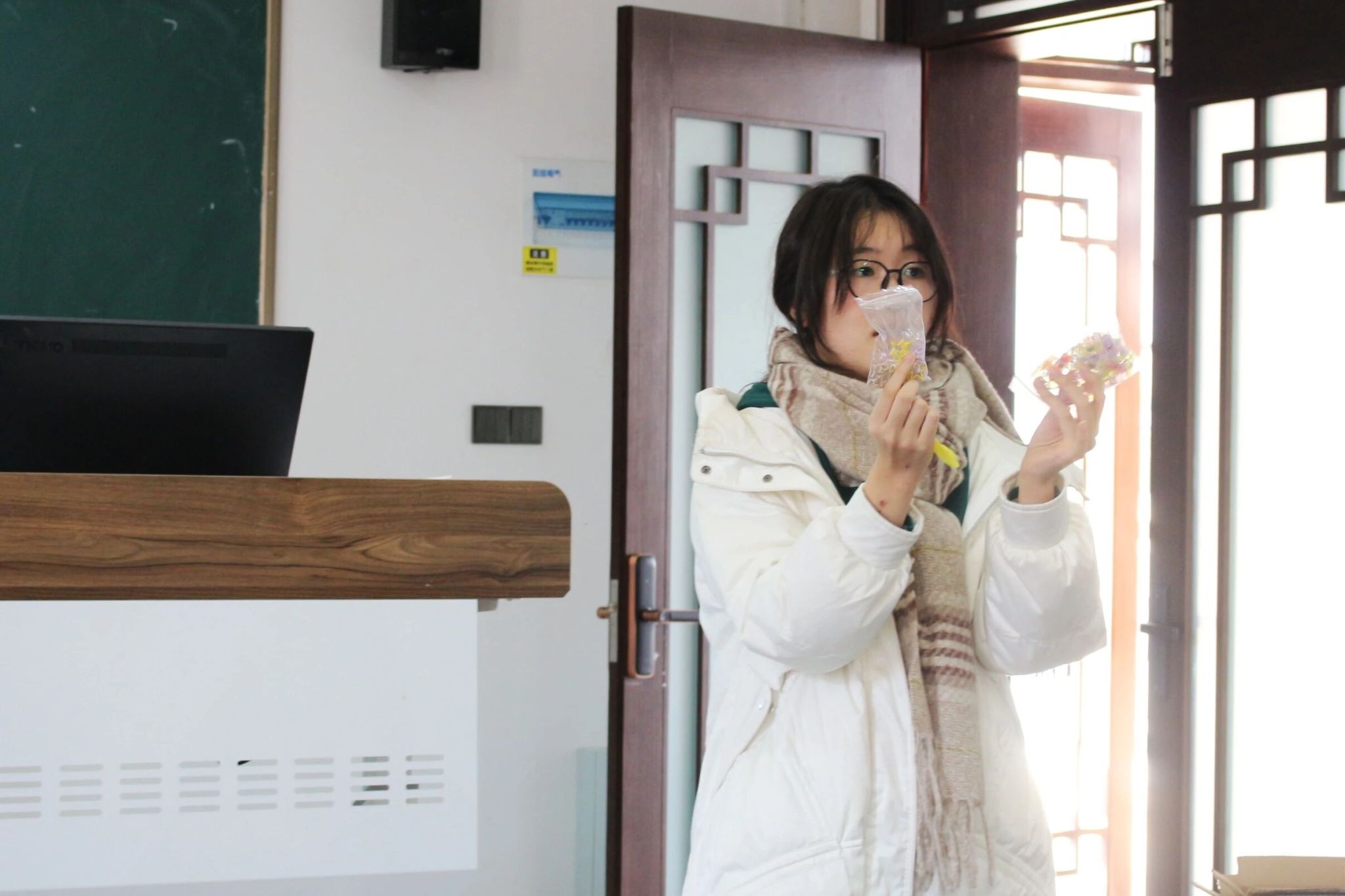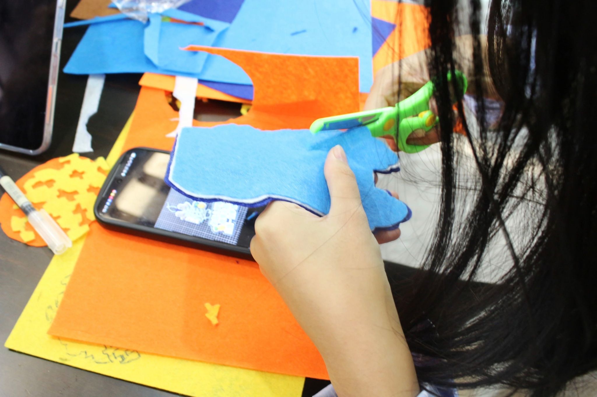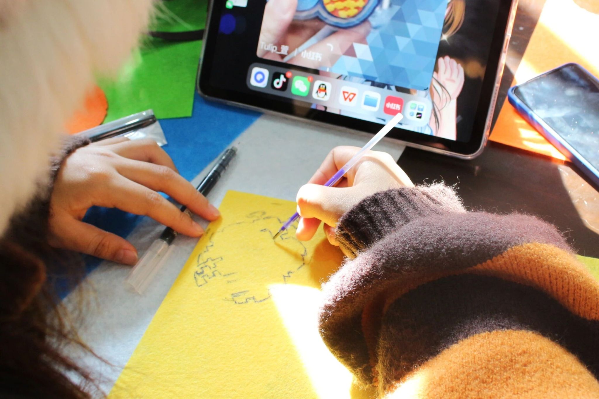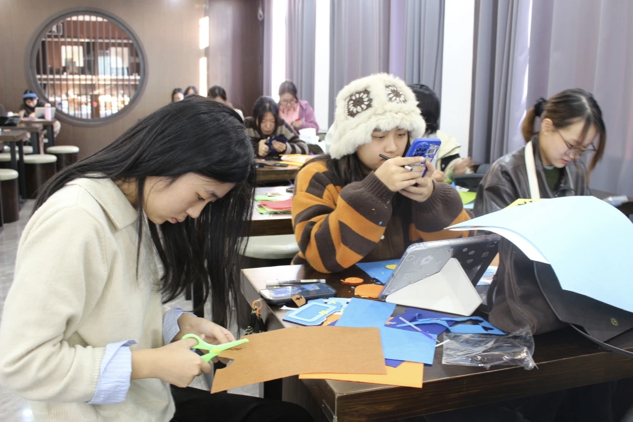 选择心仪的图样、裁剪出独特的形状……同学们专注于手中的创作,活动现场渐渐安静下来,空气中只剩下布料摩擦的窸窣声和其间流动的冬日暖意。