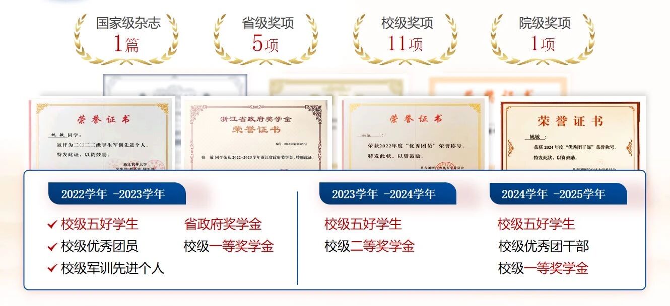 姚敏,女,中共党员,艺术设计学院工业设计222班学生,成绩优异,表现突出,入学以来平均学分绩点4.27,专业排名第1,专业必修课优良率100%。她曾获浙江省政府奖学金及校五好学生、优秀团干部、军训先进个人等荣誉称号,曾获未来设计师全国高校数字艺术设计大赛省一等奖、中国好创意暨全国数字艺术设计大赛省一等奖、米兰设计周中国高校设计学科师生优秀作品展省三等奖。此外,她作为主要负责人主持大学生创新创业训练项目,发表论文《建筑废弃物制备免烧绿色墙体材料关键技术可行性研究》1篇。